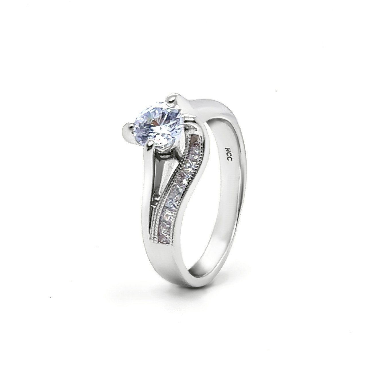 鑽石數量:18顆 鑽石重量:約29分 金重:約1.05tl 戒圍:12 材質:18k 750 白k金 適用50分鑽石之戒檯 購買一年內可免費修改戒圍上下兩圍一次